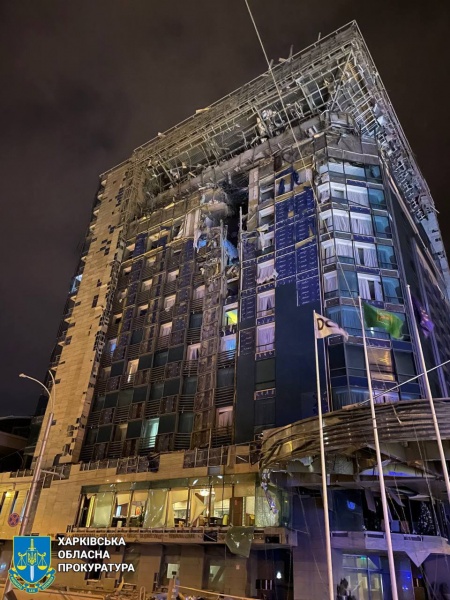 Пятизвездочный отель Kharkiv Palace был поврежден в результате атаки по ракетам. Он расположен на проспекте Правды, 2 в центральной части города и открыт 15 декабря 2011 года.