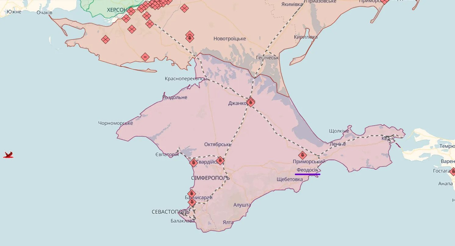 В военном движении украинцев и крымских татар «Атеш» подтвердили попадание дронов в Феодосии. По данным движения, поврежден нефтепровод, последствия атаки оккупанты ликвидировали вплоть до самого утра.