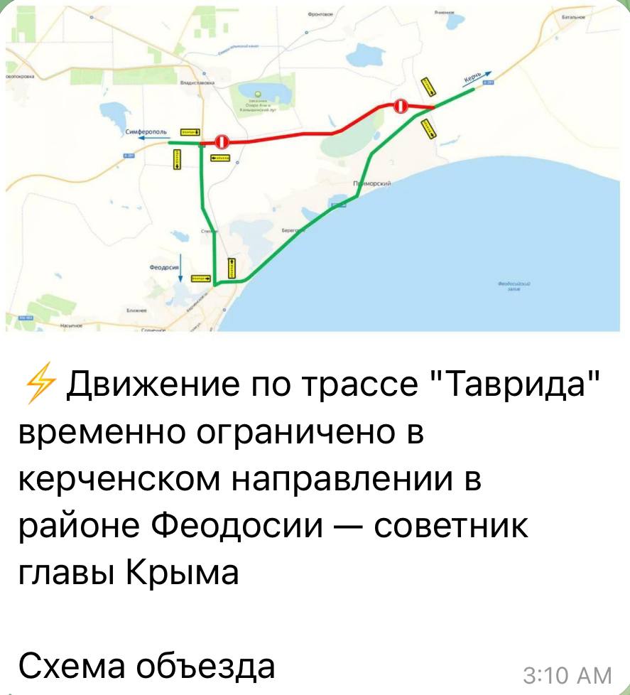 При этом после ночной атаки в Крыму фиксировались массовые выезды скорых, захватчики перекрыли участок трассы «Таврида» в районе Феодосии.