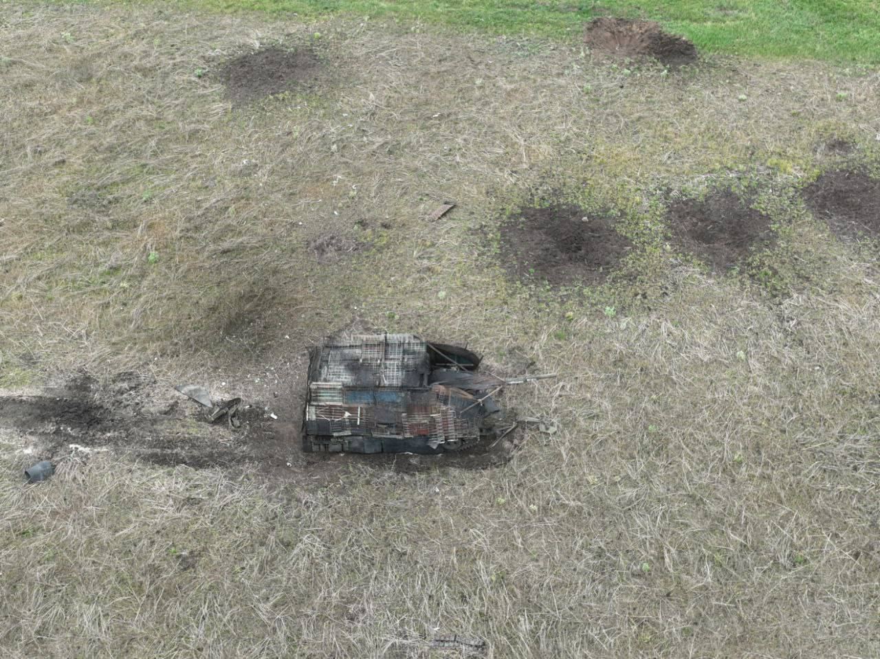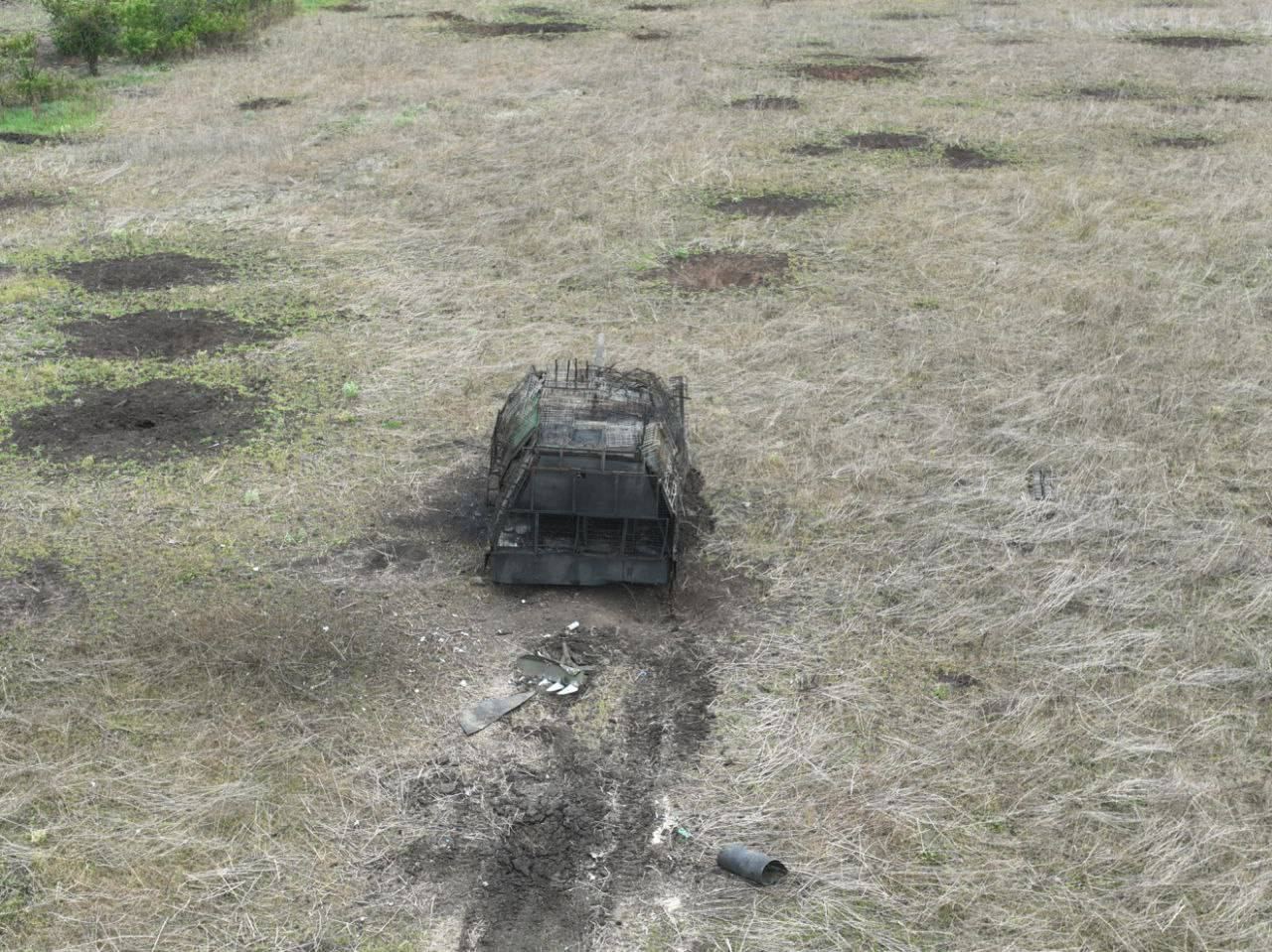 "Окраины Красногоровки. Вооруженные силы смогли остановить и существенно повредить российский танк-сарай с РЭБами", – написал он.