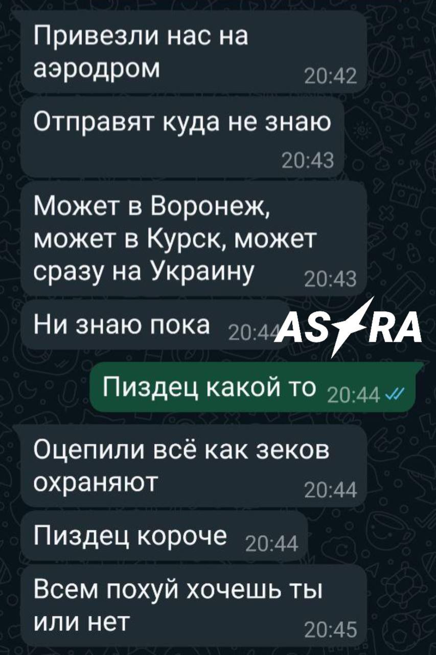Несколько сотен отказников из Петербурга насильно посадили на самолет и вывезли под Курск. Им уже выдали автоматы и собираются отправить в бой, сообщает российский Telegram-канал Astra.