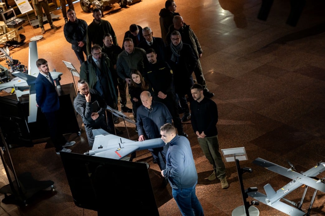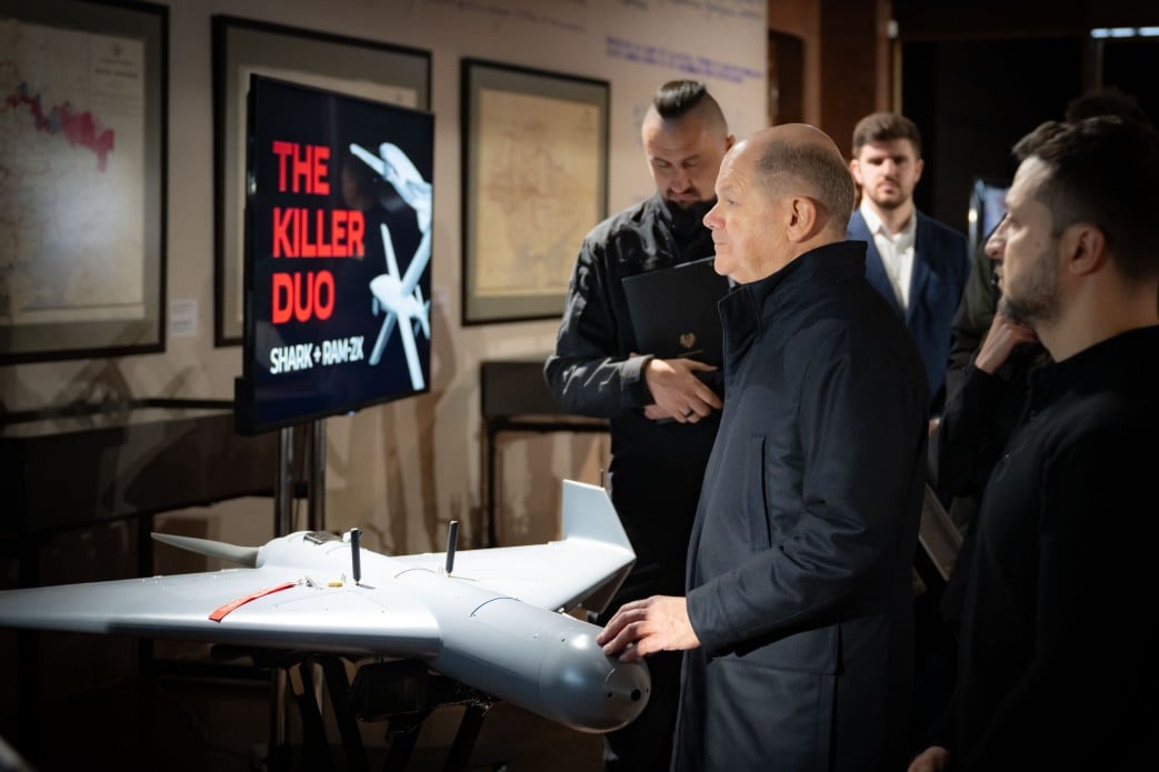 Во время визита в Украину канцлера Германии Олафа Шольца на официальных фото засветился украинский дрон, который похож на Shahed-136. Об этом пишет Defense Express.