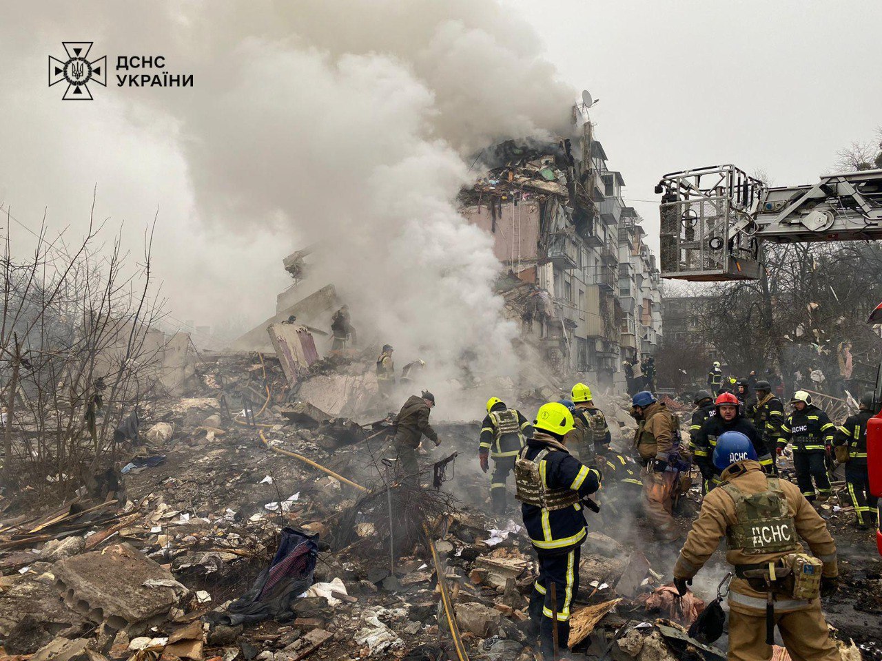 В Офисе Генпрокурора сообщили, что утром 1 февраля РФ предварительно атаковала Полтаву ракетой Х-22. В результате удара погибли 3 человека, травмированы 13, из которых 3 детей. Ракета уничтожила подъезд пятиэтажки и повредила другие жилые дома и авто.